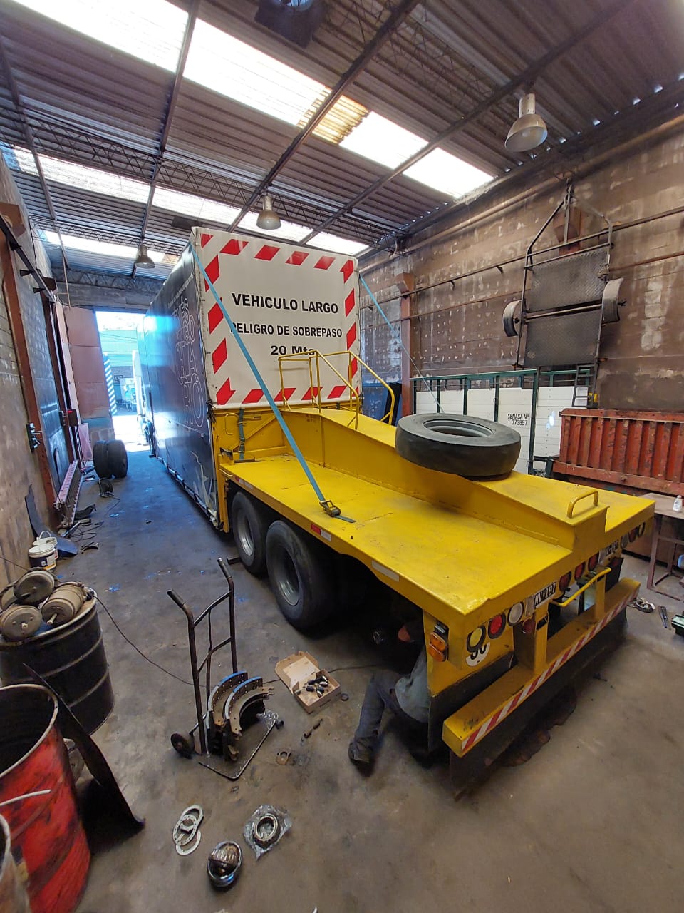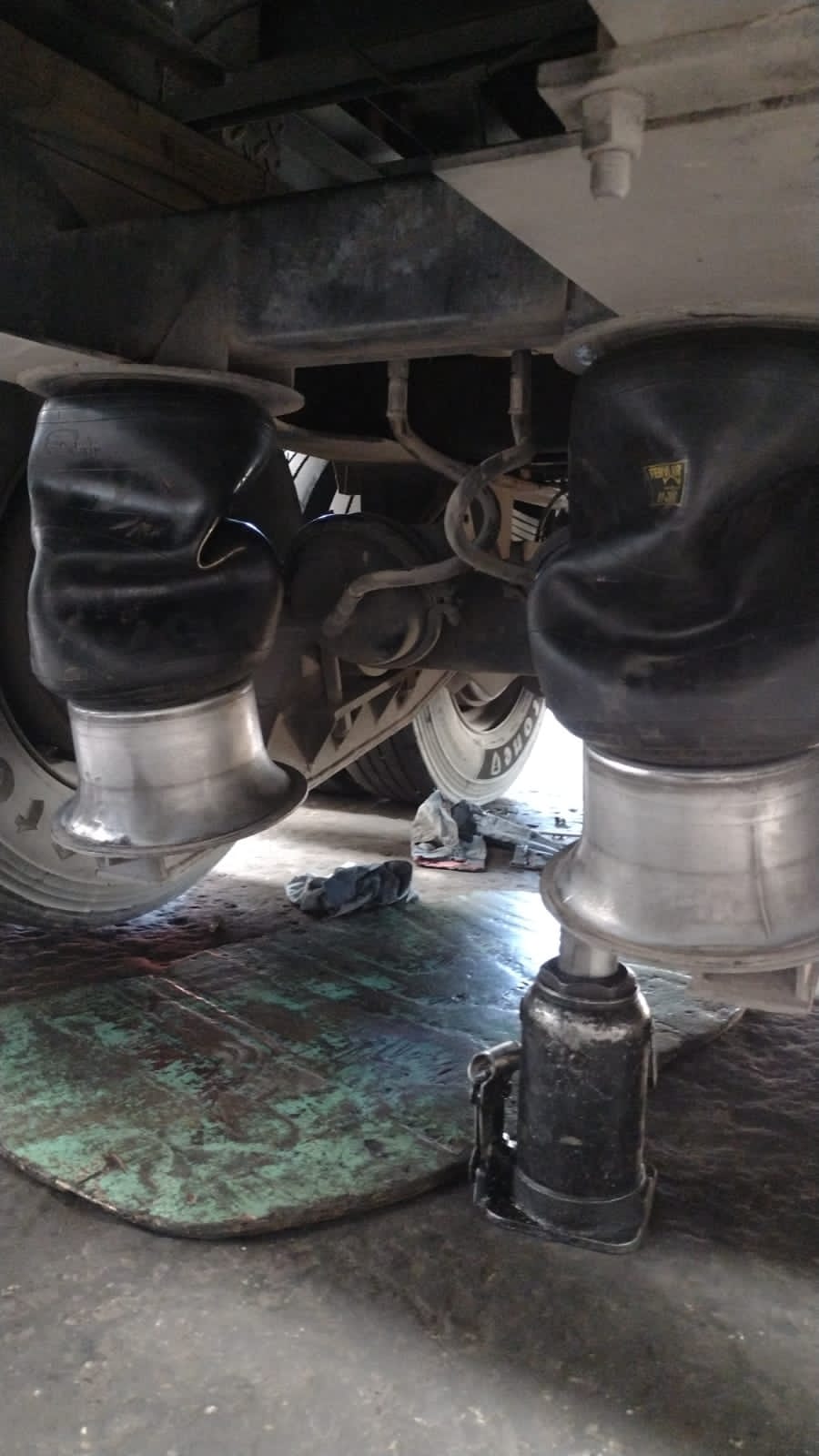 – Cambiamos bujes y pernos de tensor y balancín. Pernos de enganche, platos, chapón corrugado, patas de apoyo, aros giratorios y fuelles de suspensión.