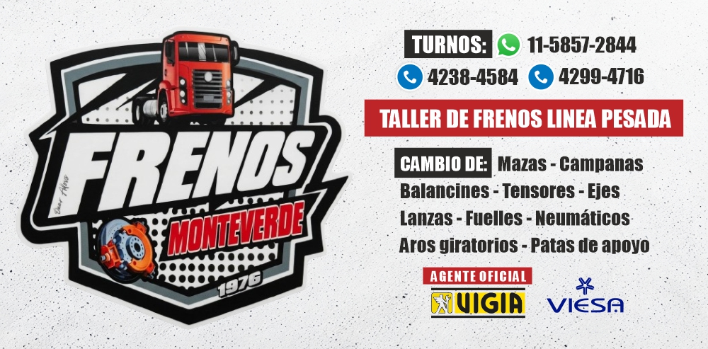 MUY IMPORTANTE PARA TENER EN CUENTA, LOS FRENOS COMPLETOS POR EJE SE REALIZA EN UN TIEMPO DE 1:30 HS. APROXIMADAMENTE.